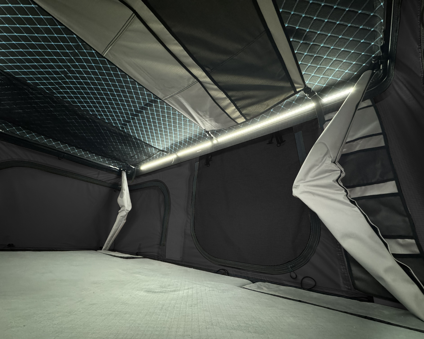- Schutz von unten: Jedes unserer Zelte kommt serienmäßig mit einer 3D-Mesh-Unterlage. Sie sorgt für eine konstante Unterlüftung der Matratze und verhindert Staunässe.