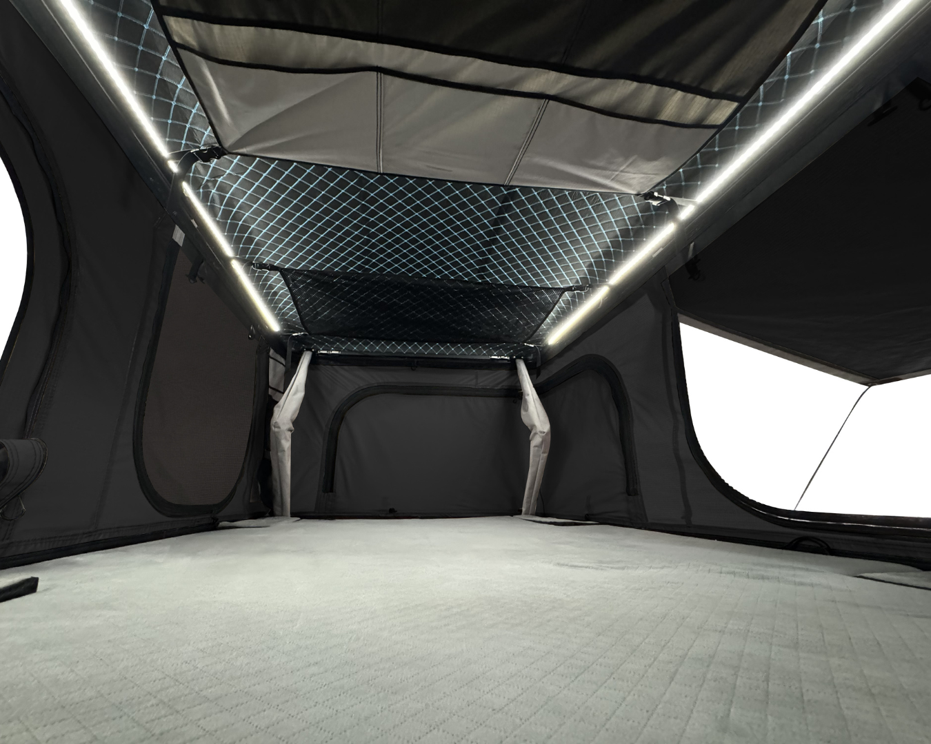- Die 3D-Mesh-Unterlage: Jedes Zelt ist serienmäßig mit einer 3D-Mesh-Unterlage ausgestattet. Diese sorgt für: